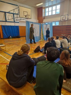V říjnu k nám opět zavítali herci The Bear Theatre. Tentokrát připravili divadelní představení pro všech 26 tříd. Mladší studenti a některé třídy španělského studia měli možnost zhlédnout představení The Detectives, detektivní příběh, ve kterém hledali vraha. Ostatní třídy se ponořily do historie Anglie. Studenti prvních ročníků vyššího gymnázia a třídy 5Š6 během představení The History of England – Part One sledovali vznik Stonehenge, dozvěděli se o přínosu Římanů, zapojili se do bitvy u Hastingsu a osvěžili si i trochu slovní zásobu. Došlo i na známé příběhy Jindřicha VIII. a jeho nešťastných šesti žen. Ty třídy, které již první díl viděly na jaře, měly možnost vidět díl druhý a v něm mimo jiné příběh Olivera Cromwella či Winstona Churchilla. I v tomto dílu bylo „jazykové okénko“, když přišla řada na Jakuba I. a jeho skotskou angličtinu. Všechna představení se líbila, a tak doufáme, že v budoucnu budeme mít možnost vidět další představení z nabídky tohoto divadla.