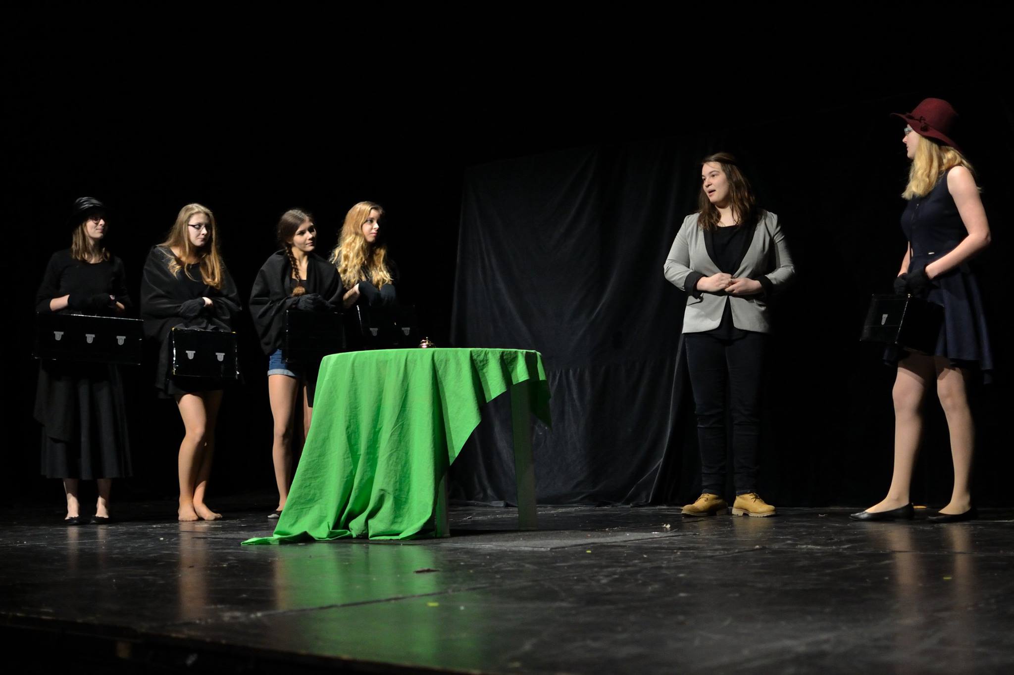 Náš anglický divadelní soubor GyBy Theatre, tradičně pod vedením profesorky anglického jazyka Dity Skřivanové a ve spolupráci s divadelním spolkem Domino Project, v tomto školním roce nastudoval již třetí divadelní hru. Tentokrát naši herci sehráli bláznivou komedii The Witches na motivy stejnojmenné knihy Roalda Dahla o sjezdu čarodějnic, jejichž cílem je postupně proměnit muže celého světa v myši.