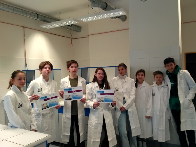 Školního kola, které se konalo 15. 2. 2022, se zúčastnilo osm žáků našeho gymnázia. Praktickou část ChO v naší laboratoři realizovali také žáci ze ZŠ Pramínek, kteří ve své škole laboratoř nemají.