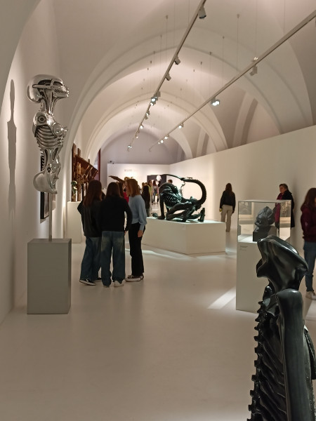 La atracción principal, sin embargo, fue la exposición del legendario artista suizo H. R. Giger, cuidadosamente organizada por la Galería Aleš de Bohemia del Sur. Nuestros estudiantes pudieron ver las obras originales del artista, considerado uno de los más importantes y transgresores del arte contemporáneo en la segunda mitad del siglo XX. Sus obras, ampliamente conocidas, forman parte de la cultura popular de nuestra época, y nuestros estudiantes tuvieron la ocasión única de ser testigos de primera mano de este gran pedazo de la historia del arte.