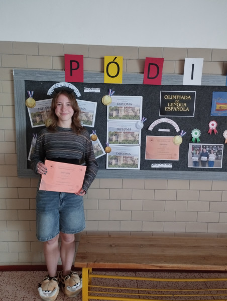 V celostátním kole konverzační soutěže ve španělštině, které se konalo v Praze na VŠE, reprezentovaly naši školu studentky Anežka Batelková (3A8) a Vendula Marvanová (5Š6). Anežka se ve své kategorii umístila na krásném druhém místě! Blahopřejeme!