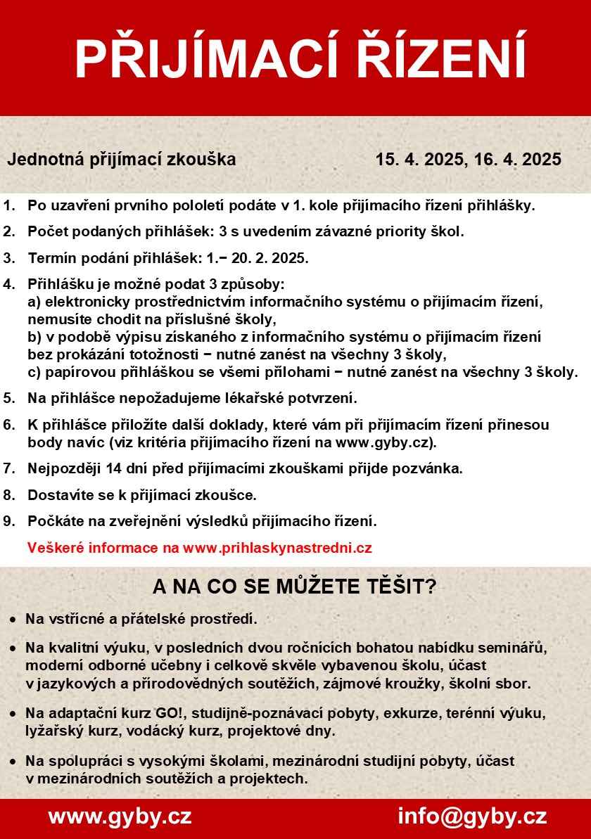 Body byly přiděleny na základě vyhlášených Kritérií přijímacího řízení pro daný obor.