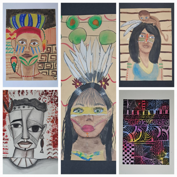 S potěšením zveřejňujeme výsledky každoroční soutěže Ibérica Creativa. Letošním tématem byl Život domorodých národů v Amazonii a bylo oceněno 5 našich studentů. II.kategorie: 2.místo – Gabriela Jirků 1A8 3.místo – Kristýna Frolová 1A8 III.kategorie 1. místo – Andrea Zemanová 4A6 1.místo – Sára Mannová 2B4 3.místo – Julie Oplatková 4A6 Všem velice gratulujeme a přikládáme díla všech zúčastněných výtvarníků v letošní soutěži.