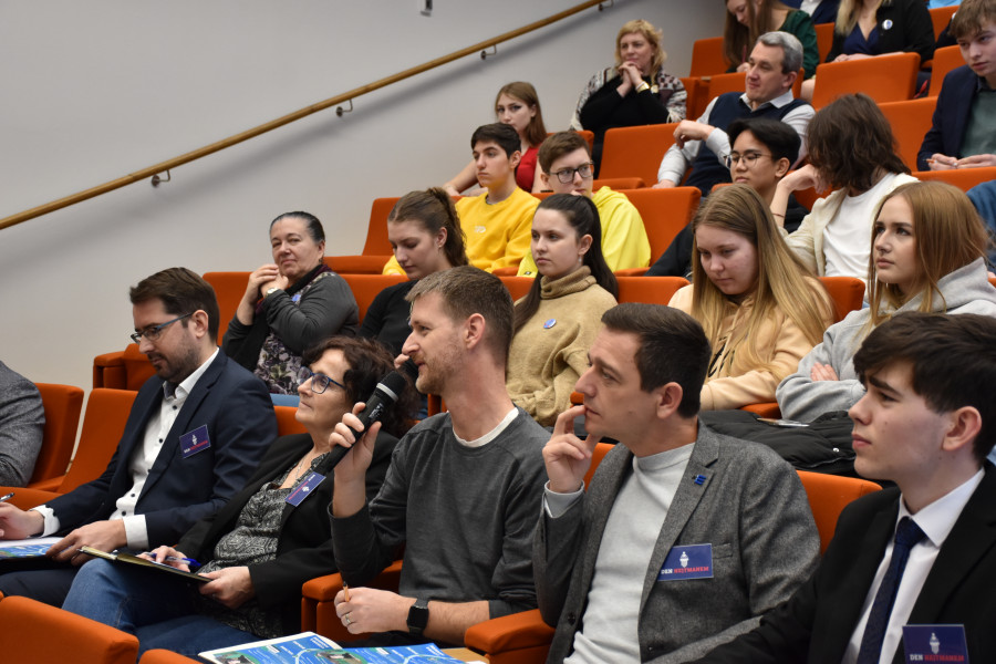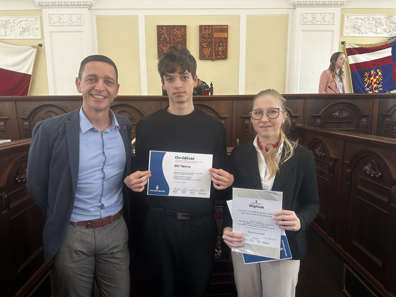 I letos naši školu reprezentovali 3 nadaní studenti ze tříd 3Š6 a 5A6 na politologické soutěži Jeden den hejtmanem. Vanessa, Jiří a Dominika vytvořili tým pro svou fiktivní volební kampaň a oslovili svým volební spotem, návrhem rozpočtu a prezentací nejen volitelé z jiných škol JMK, ale i odbornou komisi složenou ze současného hejtmana JMK Jana Grolicha, vedoucího katedry politologie MU Otto Eibla, dále vedoucího Institutu veřejné správy MU Filipa Hrůzu, a v neposlední řadě i ředitele televizního studia Brno ČT Jana Součka, nebo proděkanku ESF MU Sylvu Žákovou Talpovou. Celá akce by se nekonala bez podpory JMK a hlavních organizátorů soutěže, studentů a učitelů z Gymnázia Vídeňská.