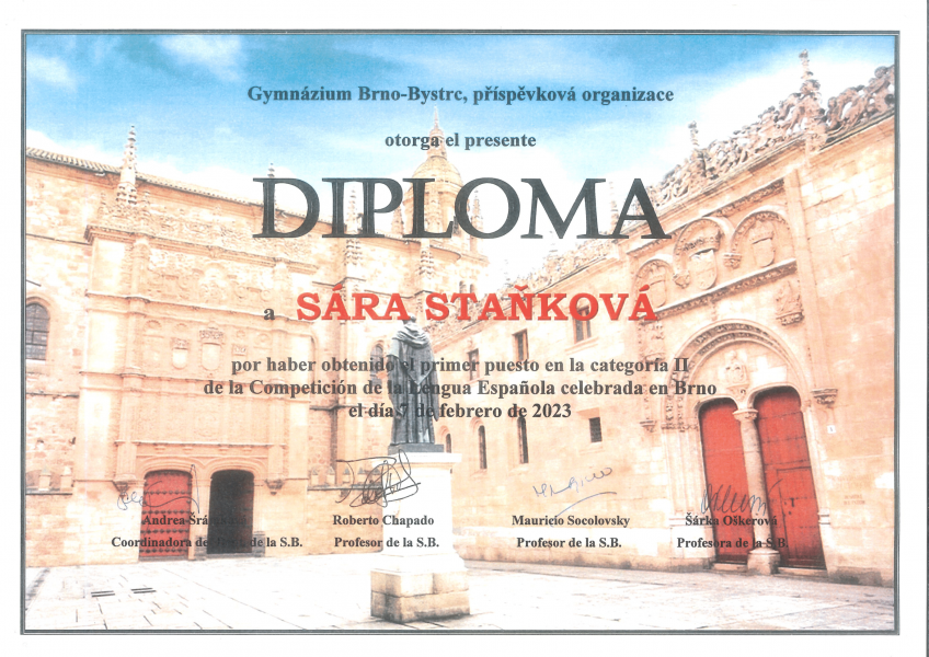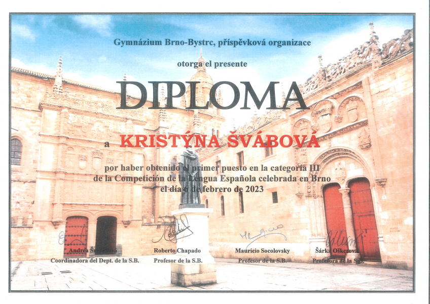 Ve dnech 6. a 7. února 2023 se na naší škole konalo školní kolo konverzační soutěže ve španělštině. Účastníci soutěžili ve 3 kategoriích. Všichni soutěžící byli skvělí a v příjemné atmosféře předvedli krásné výkony.