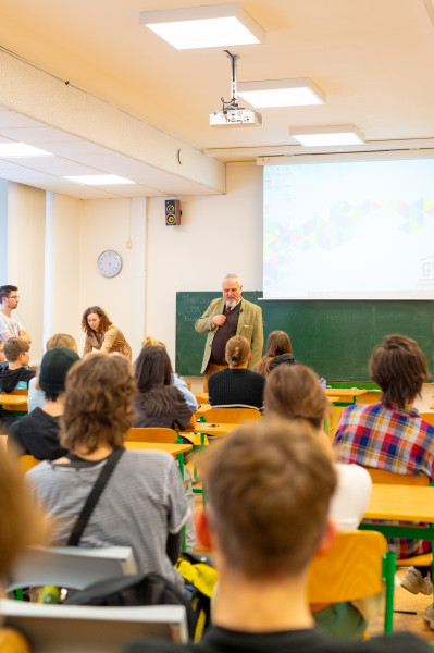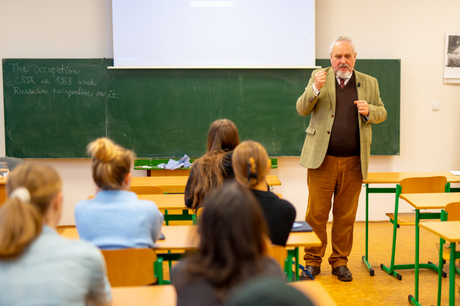 Dne 30. listopadu jsme měli velkou čest přivítat na naší škole známého ruského historika Andreje Zubova. Profesor Zubov je nyní hostujícím profesorem historie na Masarykově univerzitě v Brně a hlavním editorem knižního titulu Dějiny Ruska 20. století. Pan profesor se setkal s žáky třídy 2A6 a studenty maturitních seminářů z dějepisu. V hodinové přednášce představil téma okupace ČSSR v roce 1968 v kontextu ruského myšlení a politiky a následně odpovídal na dotazy našich studentů. Přednáška s diskuzí byla uskutečněna v rámci projektu Měsíc filmů na školách od vzdělávací programu Člověka v tísni – JSNŠ. Studenti nejdříve v hodině dějepisu zhlédli zkrácený dokument Josefa Pazderky s názvem Invaze 1968. Ruský pohled a následně debatou s ruským historikem a pamětníkem Zubovem měli možnost celou událost z našich dějin rozebrat. Ještě jednou děkujeme našemu hostu za přijetí pozvání na naši školu, obohacující informace a milé setkání. Díky patří také všem kolegům a studentům, kteří se zúčastnili programu, a paní Honzíkové z řad rodičů žáků naší školy za pomoc.