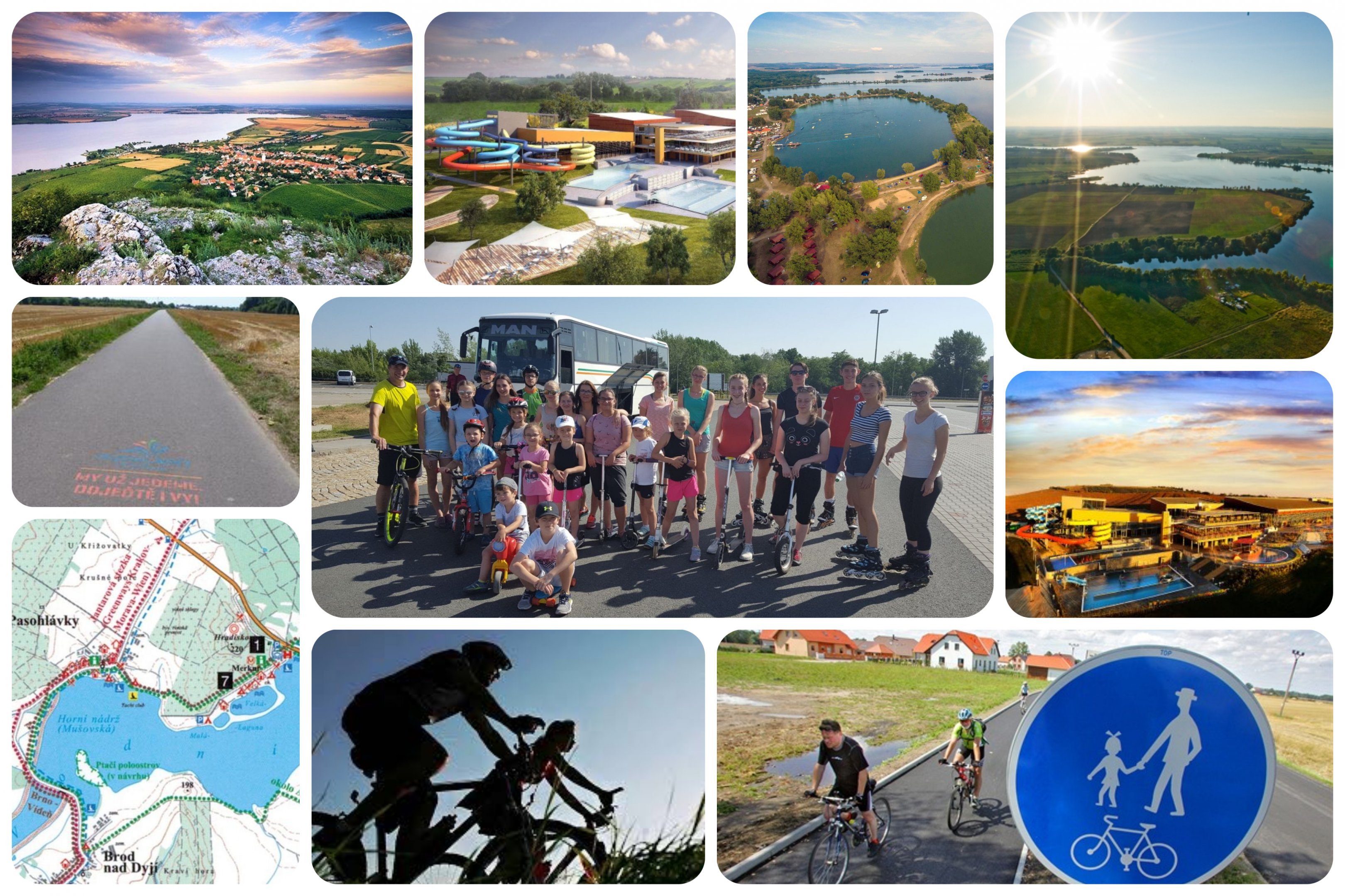 POPIS AKCE: Výlet po zajištěné cyklostezce okolo vodní nádrže Nové Mlýny spojený s návštěvou Aqualandu Moravia. S sebou možno vzít různé druhy dopravních kolečkových prostředků (kolo, koloběžka, kolečkové brusle, skateboardy, longboardy a podobně). Kolo výlet 9.00-11.00, vodo hrátky 11.00-15.00 hodin. Oběd zajištěn v areálu Aqualand Moravia. Výlet je realizován za každého počasí, časový harmonogram může být aktuálně přizpůsoben.