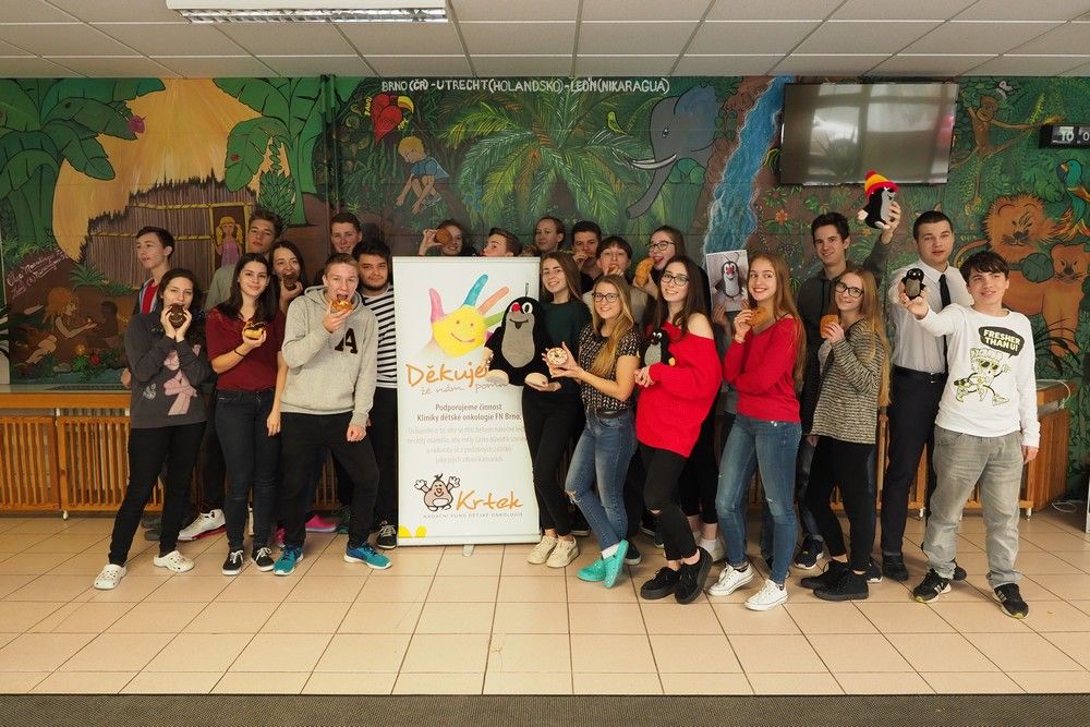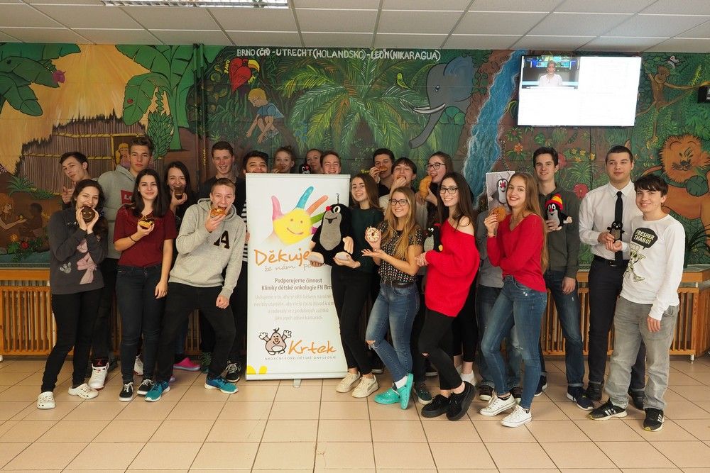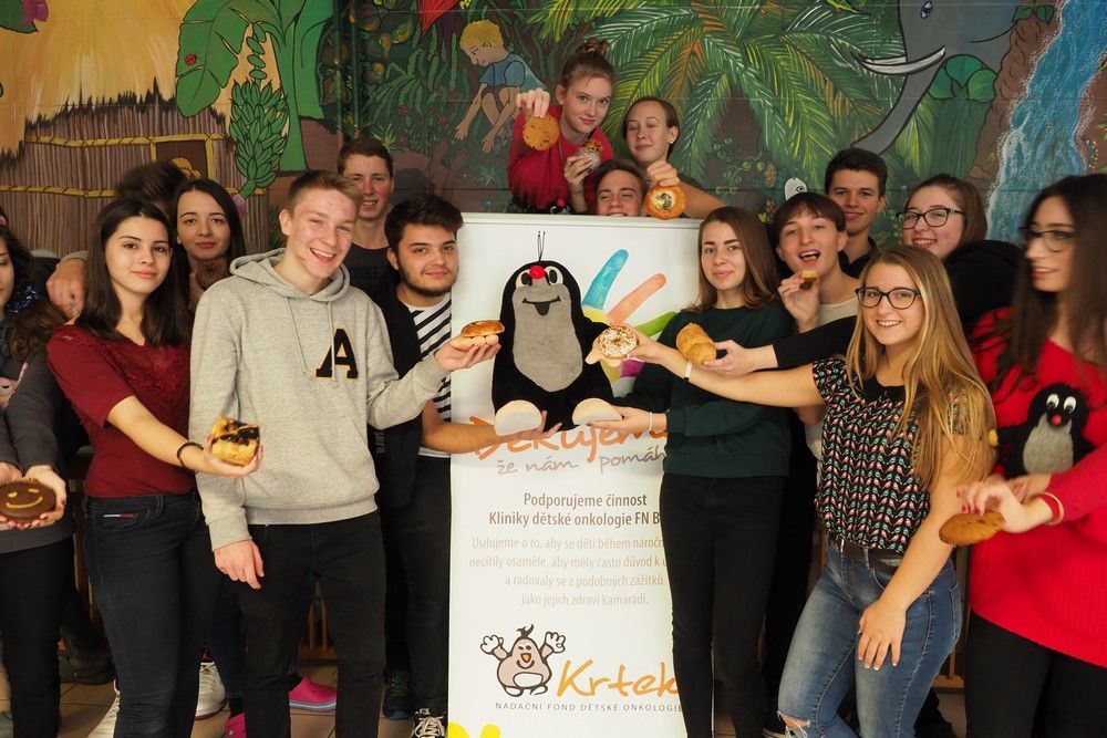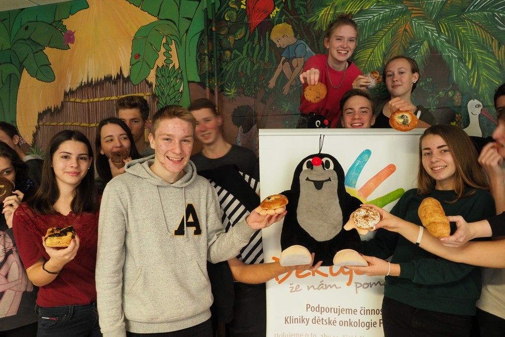 Jedeme dál! I v tomto školním roce bojujeme o potvrzení titulu Světová škola. I v tomto školním roce podpoříme Nadační fond dětské onkologie Krtek. I v tomto školním roce kromě jiného uspořádáme akci Pomáháme pečením. Děkujeme za podporu i pomoc. Třída 6A8 + prof. Těšáková a Hanáčková