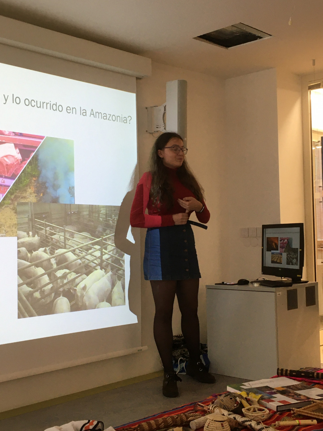 V pátek 18. 10. 2019 se žáci druhého, třetího a čtvrtého ročníku španělské sekce zúčastnili studentského kolokvia v rámci projektu „Týden pro Amazonii“. Koordinátorem akce je Mendelova univerzita a účastnili se jí zástupci, pedagogové i studenti MUNI, UK, VŠE a ekvádorské Universidad del Azuay. Celé kolokvium se konalo v přátelském prostředí Filozofické fakulty Masarykovy univerzity. Za naši školu vystoupila Ema Slámová z 2Š6 s prezentací o veganství; 3. ročník zastoupený studentkami Karolínou Pokornou, Sárou Surovcovou, Julií Svobodovou a Kateřinou Kašparovou přispěl do projektu animovaným příběhem o Juanu Dariénovi a na závěr Sebastian Wright a Hanka Markesová ze 4. ročníku prezentovali svůj příspěvek o deforestaci Amazonského pralesa.
