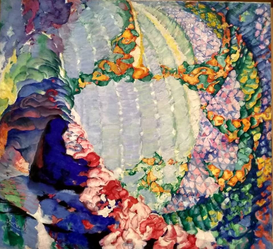 Po polední chvilce na oběd jsme se metrem přesunuli do Valdštejnské jízdárny, kde v současné době probíhá výstava F. Kupky, malíře 20.století světového významu. Velice šikovná paní průvodkyně nás zasvětila do tajů alchymie vzniku abstrakce a přiblížila tím tento ne vždycky jednoduchý a pochopitelný výtvarný směr i studentům, kteří upřednostňují hudební výchovu.
