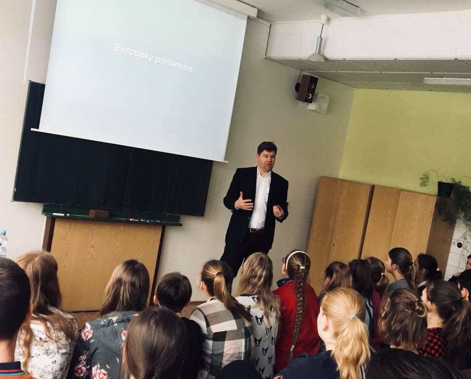 Dne 2. 3. 2018 navštivil naši školu europoslanec JUDr. Jiří Pospíšil, aby nás seznámil s historií a fungováním EU.